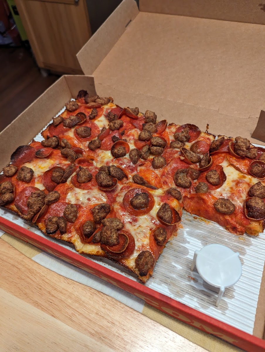 Detroit style pizza by the slice ? For only $3 Sign me up! Everyday they have different flavors you can pick from. Super convenient! Great service! Clean inside.